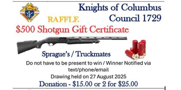Congratulations! and THANKS TO ALL for supporting the Knights of Columbus council 1729.
